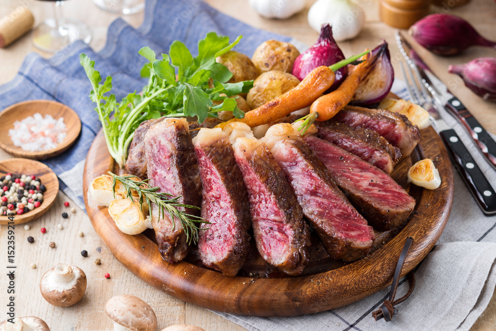 Tableau sur toile 【和牛サーロインステーキ】塩と胡椒でシンプルにグリルした国産和牛ステーキ。 香ばしい焼目の下に柔らかな赤身を楽しめるレアに仕上げました。