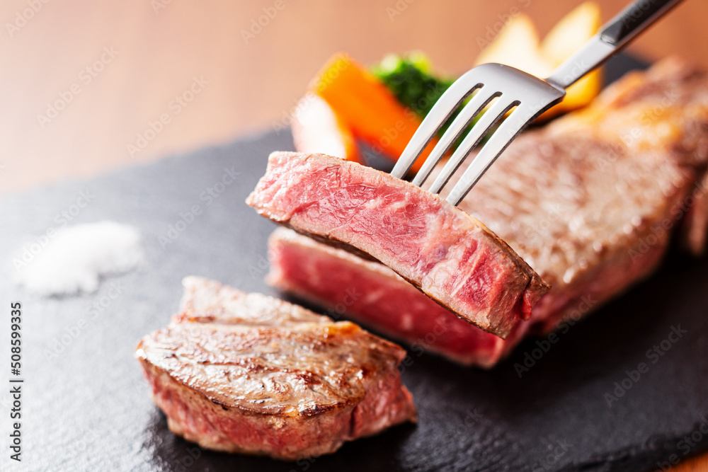 ステーキ 焼肉 鉄板焼き クローズアップ 焼き肉