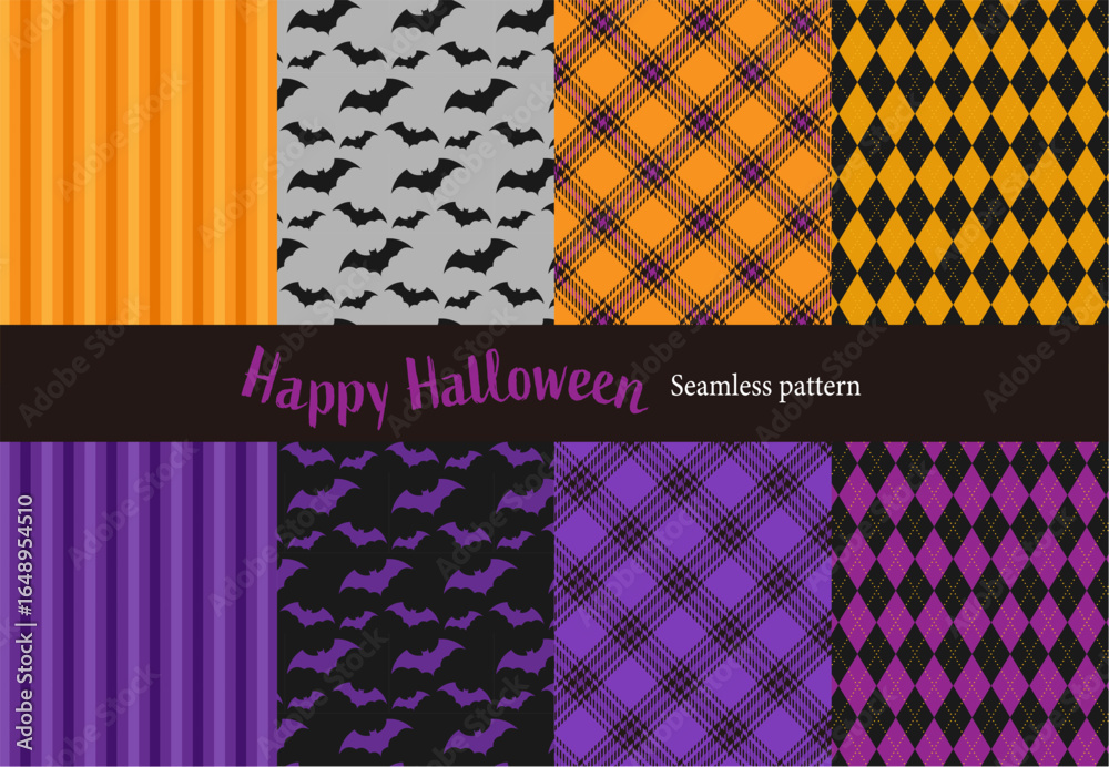 Photos ハロウィンイメージのシームレスなパターン柄セット ベクター チェック 菱型 ストライプ コウモリ