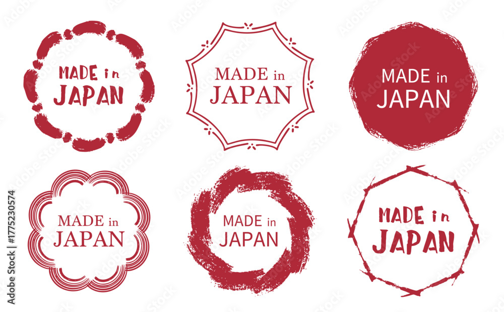 Tableau sur toile 墨で描いた和風テイストの日本製を示すマークのセット。A sticker icon indicating that the product is made in