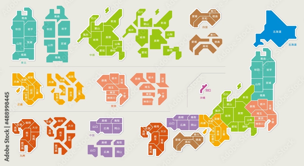 Tableau sur toile 日本地図 色分け 都道府県 イラスト