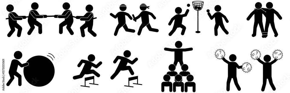 Photos 運動会の種目を表すピクトグラムセット・綱引きリレー玉入れなど複数競技のシルエット素材