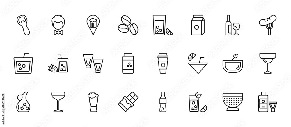 Photos 24 set of outline web drinks icons such as bartender, lemon juice, daiquiri, gre