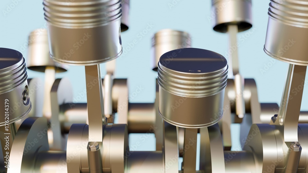 Photos A 3d illustration of pistons, connecting rods and crankshaft, conveying a sense of precision mechanical engineering and the core components of an internal combustion engine