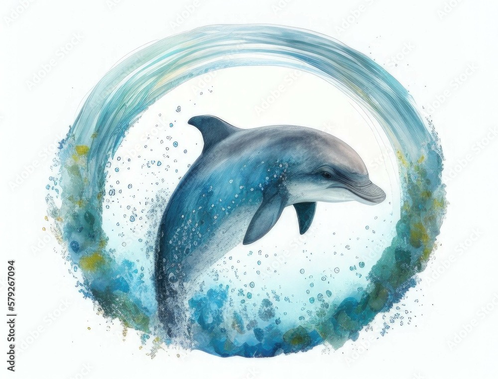 Tableau sur toile A beaming dolphin swimming in circles near the shoreline