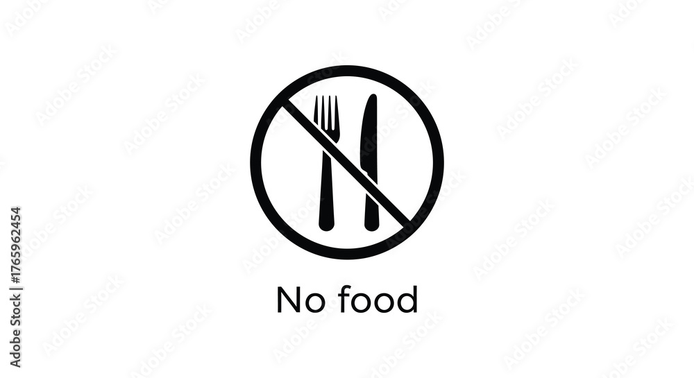 Photos A clear black silhouette of a fork and knife crossed out within a circle indicat