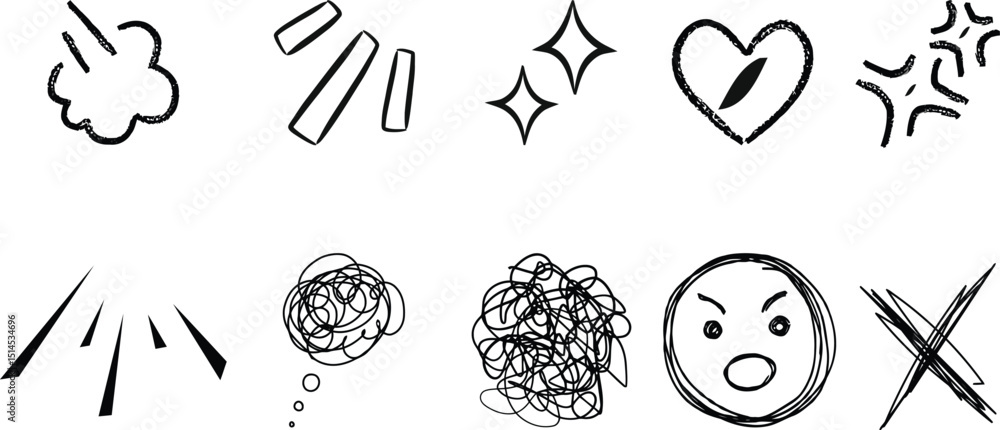 Photos A collection of hand-drawn doodles depicting various emotions and abstract conce