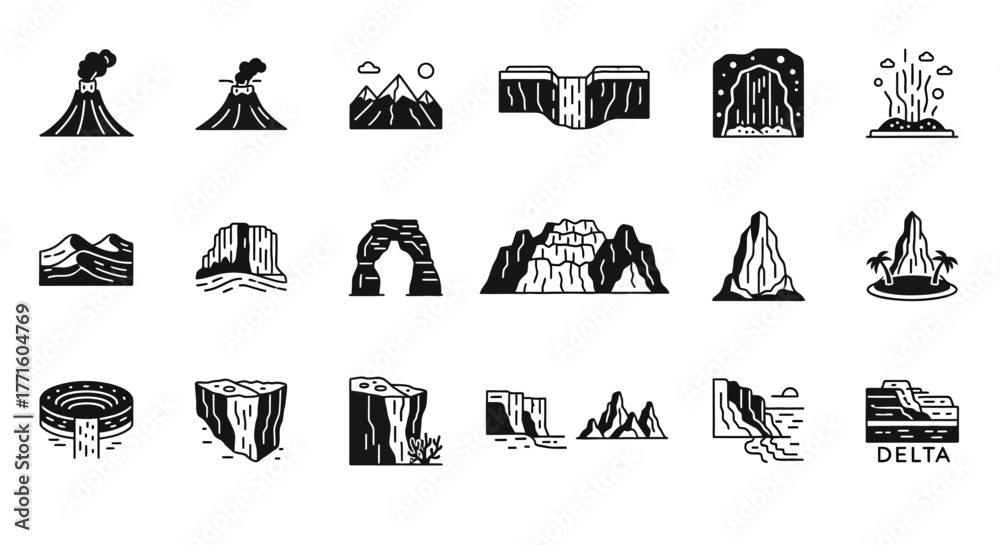 Tableau sur toile A comprehensive set of minimalist line art icons depicting various geological la
