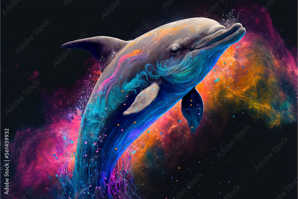Tableau sur toile A dolphin swims in the universe and nebula of science fiction
