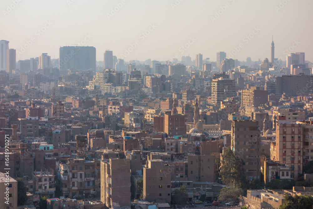 Photos A hazy panoramic view of the vast and sprawling cityscape of Cairo, seen from th