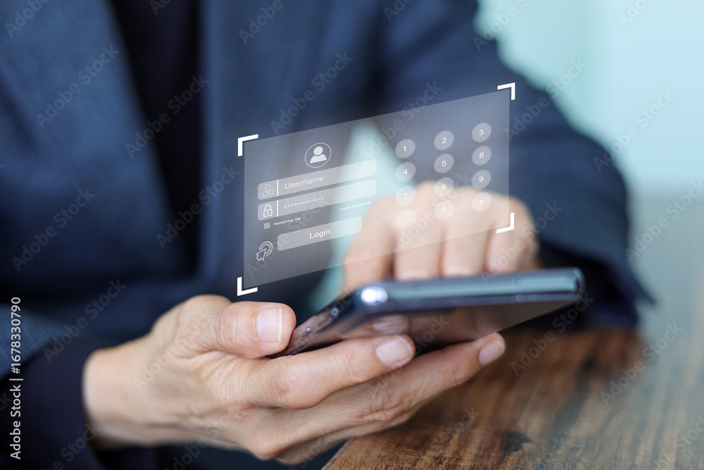 Photos A person is securely logging in or signing up on a digital application on a smartphone
