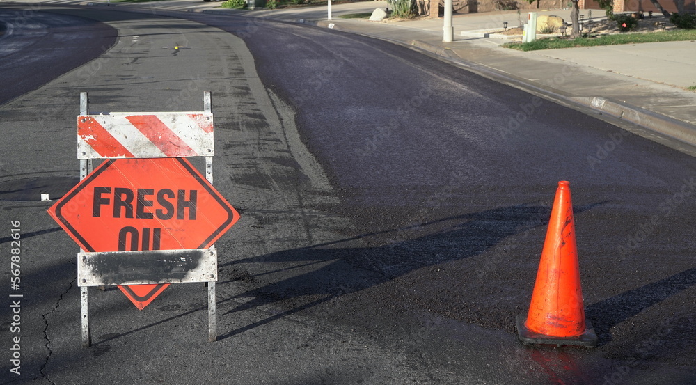 Tableau sur toile A residential road is closed off during road resurfacing project