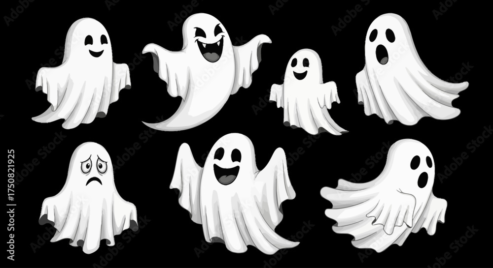 Photos A whimsical assortment of classic cartoon ghosts displaying a full range of spoo