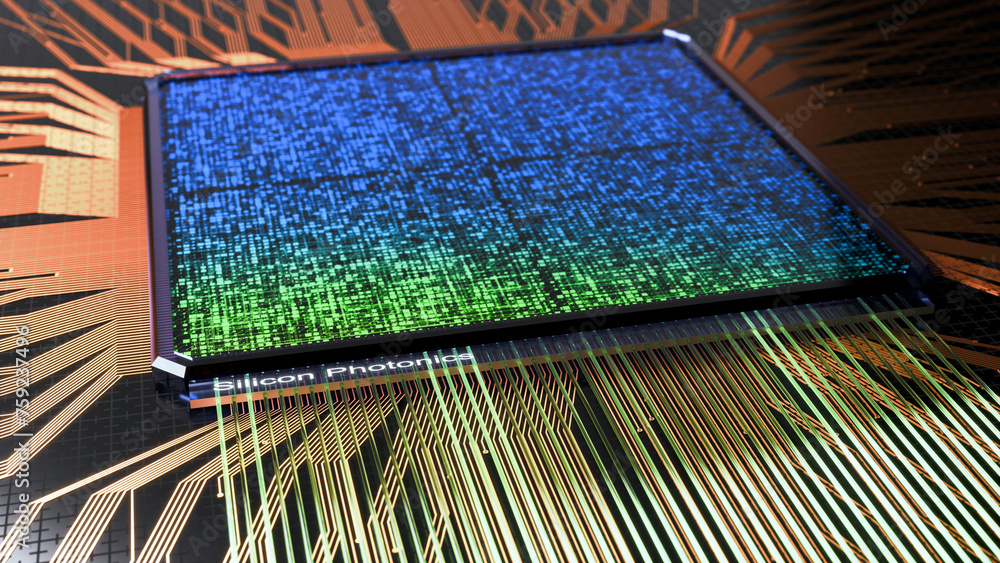 Tableau sur toile Abstract 3d render of a silicon chip with photonic interconnect