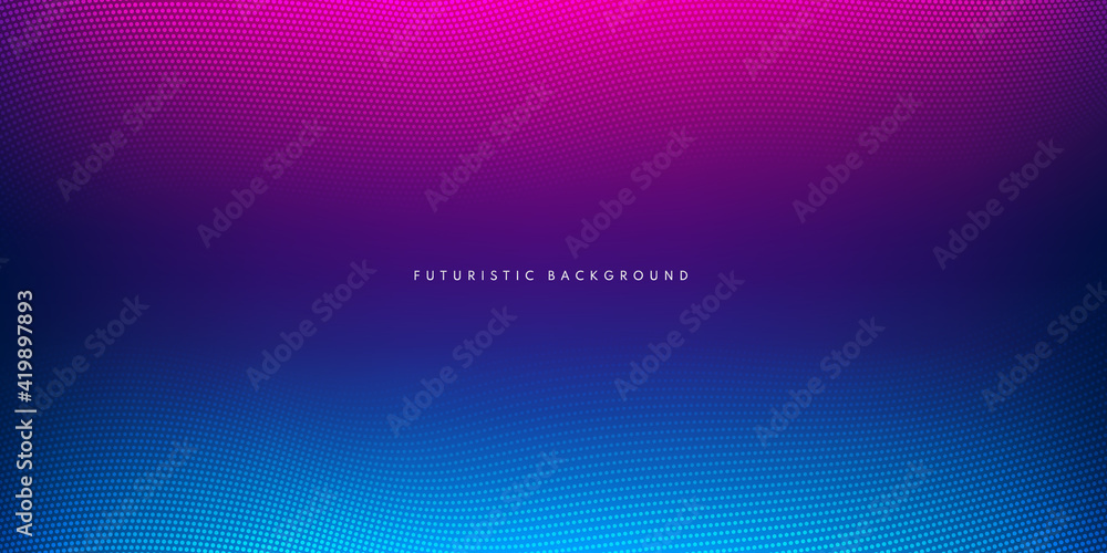 Tableau sur toile Abstract halftone pattern glowing light blue and pink purple on dark background with copy space