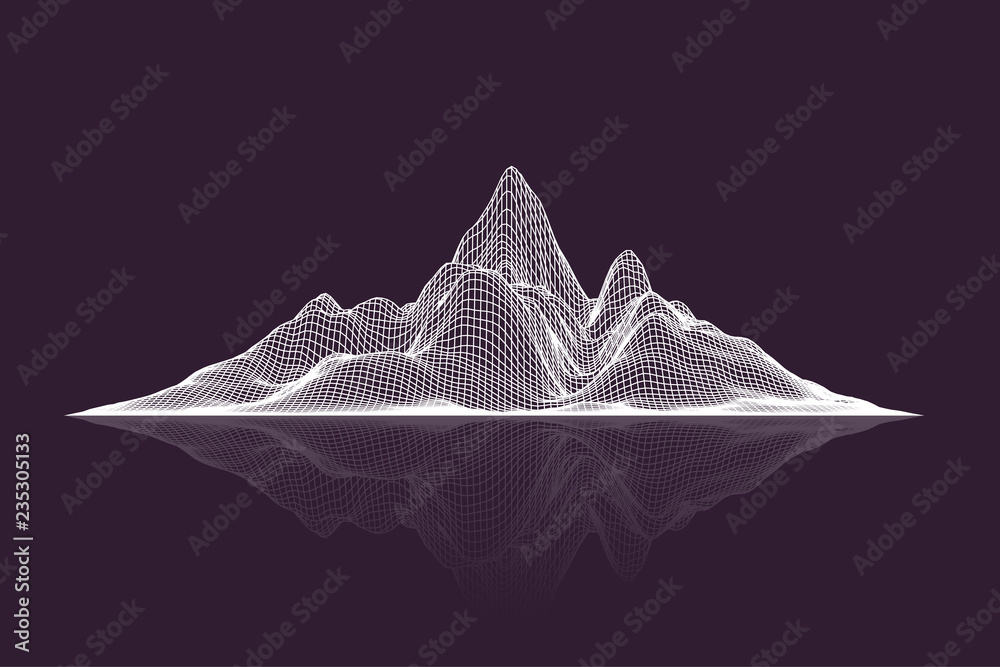 Tableau sur toile Abstract vector wireframe mesh mountains with reflection, front view