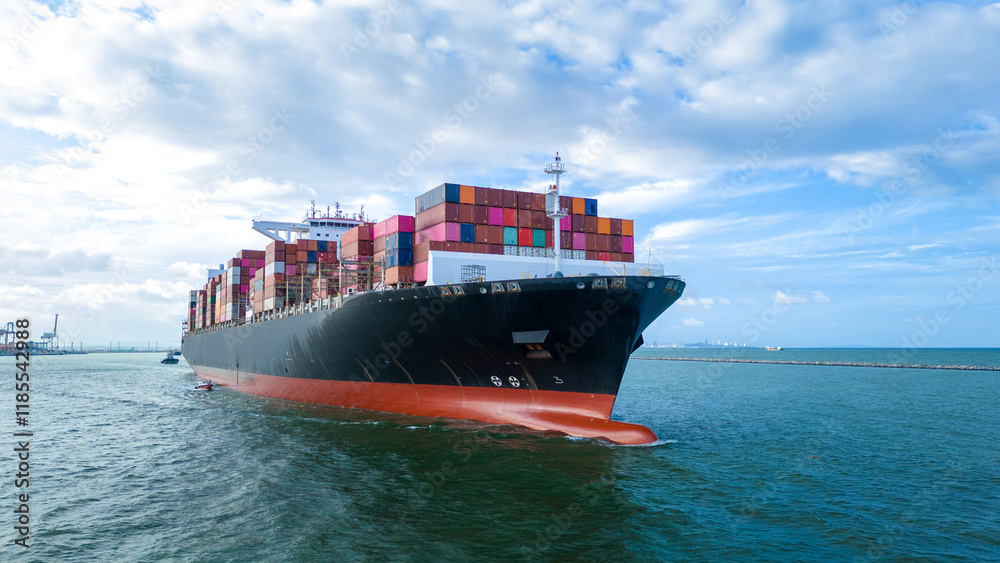 Tableau sur toile Aerial side view of cargo ship carrying container and running for export cargo y