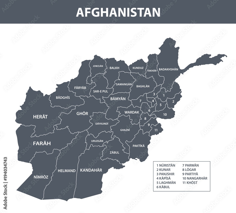 Tableau sur toile Afghanistan map with administrative devision on regions