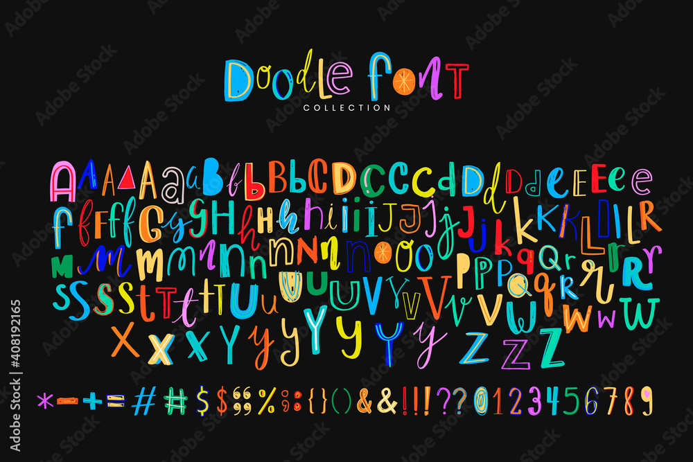 Photos Alphabet symbol doodle vector font style colorful set