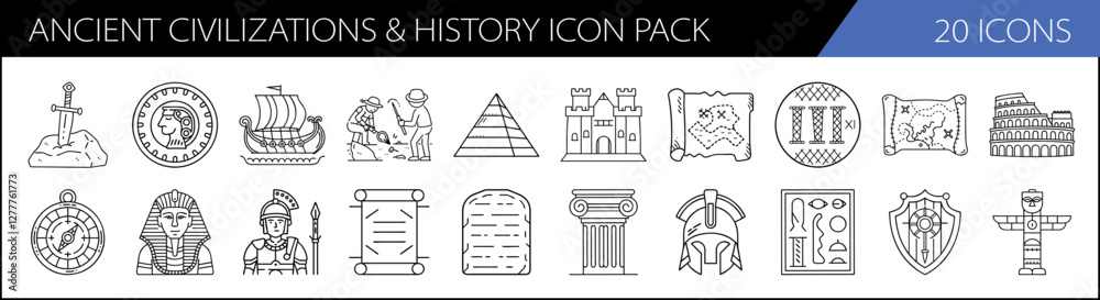 Photos Ancient Civilizations & History Icon Pack - A collection of 20 icons representing symbols from ancient civilizations and historical landmarks, perfect for design projects
