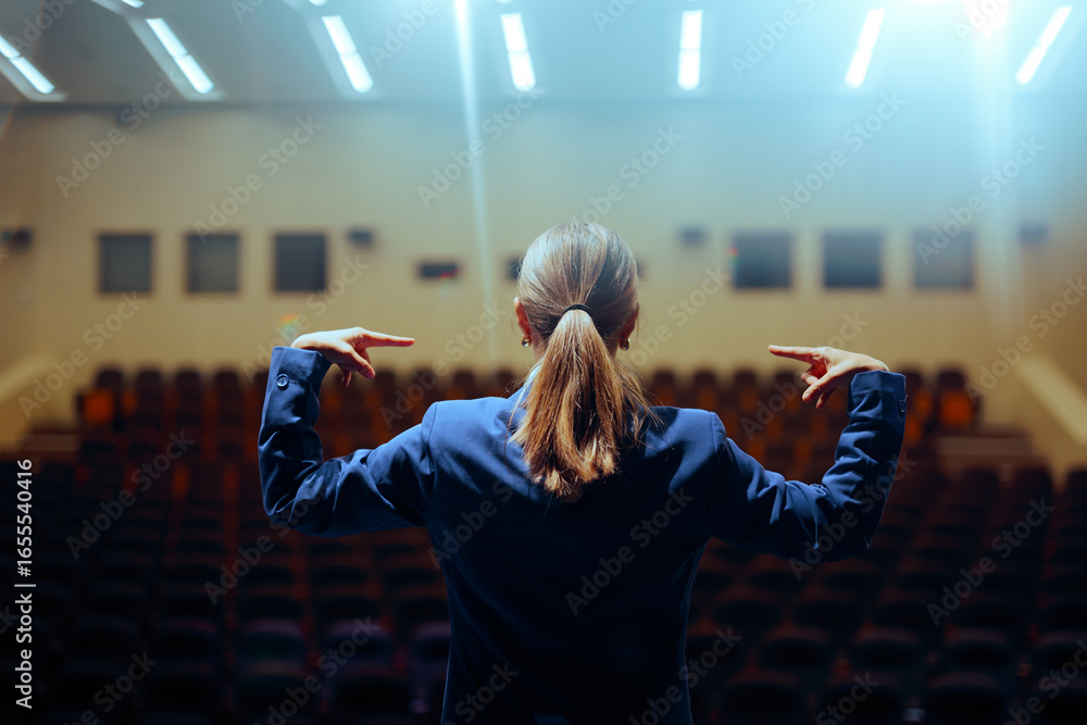 Photos Arrogant Leader Rehearsing a Public Speech Pointing to Herself
