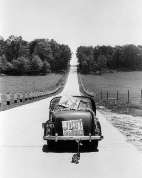 UNITED STATES - Circa 1930s: Back View Of Car With Just Married Sign.