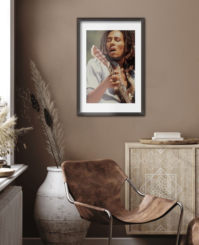 Cadre de haute qualité fabriqué en Europe, avec du plexiglas et des panneaux MDF. Au dos, il contient des poignées en acier des deux côtés pour faciliter l'accrochage. Ne contient pas de passe-partout.