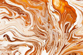 Caramel, cream dynamic and fluid raster texture. Abstract acrylic paints mixture color background. Dyeing, liquid flow effect modern design. Orange, rustic and white pigments, watercolor wallpaper