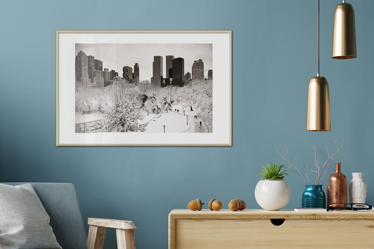 Cadre de haute qualité fabriqué en Europe, avec du plexiglas et des panneaux MDF. Au dos, il contient des poignées en acier des deux côtés pour faciliter l'accrochage. Ne contient pas de passe-partout.