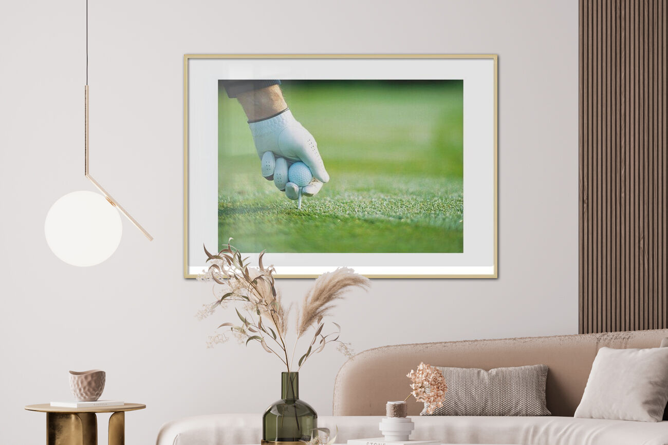 Poster Golfer's gloved hand teeing up, close-up