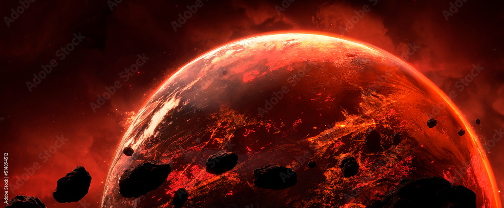 Photos Asteroids flying in space fall on planet, belt of large metallic asteroids enters the planet atmosphere