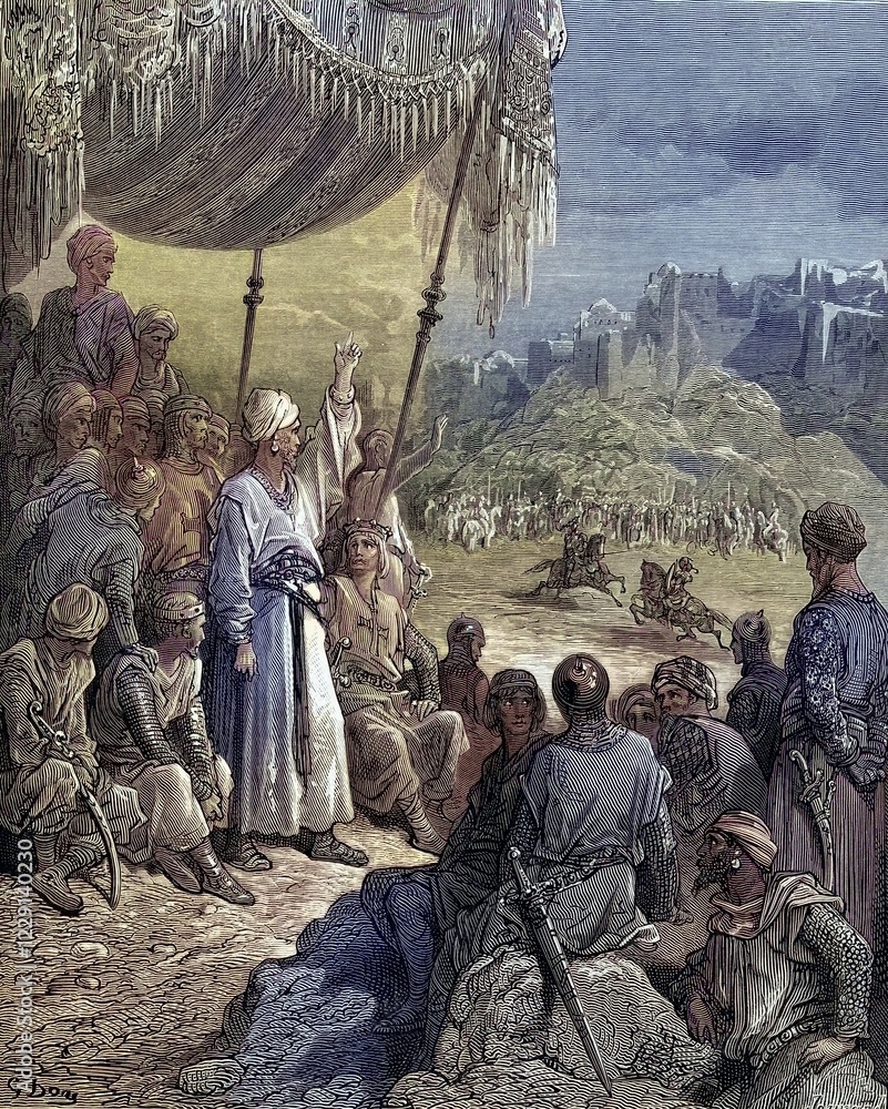 Poster adhésif A friendly tournament during the third crusade in 1189, Historical, digitally re