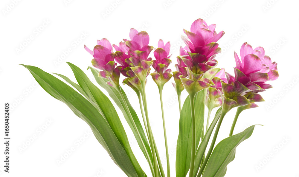 Poster adhésif Siam tulip flower with leaves, Pink tropical flower isolated on white background