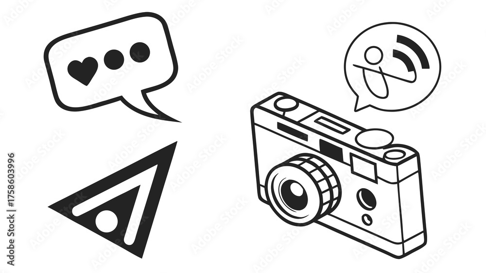 Poster adhésif Illustration of social media and camera, showcasing communication, photography,