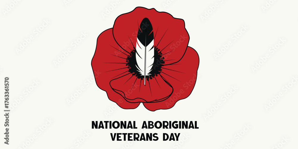 Poster adhésif National Aboriginal Veterans Day Red Poppy with Indigenous Feather Symbol Illust