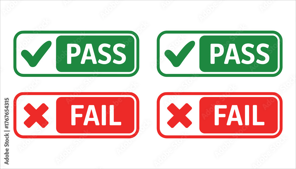 Poster adhésif Two green pass checkmark signs and two red fail cross signs vector