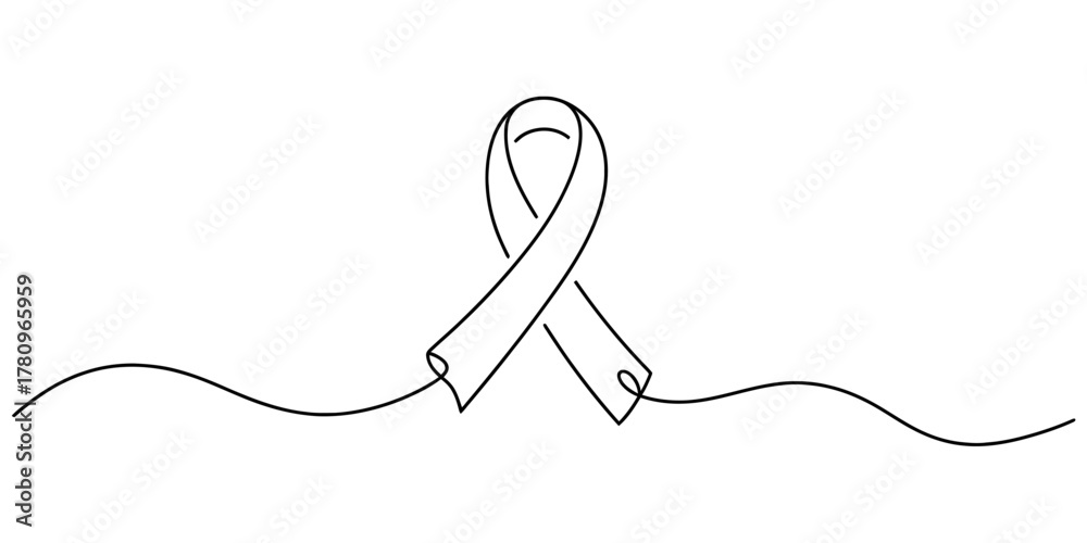 Poster adhésif Continuous line art drawing of an awareness ribbon, symbolizing support, hope, and solidarity for various causes and health initiatives worldwide
