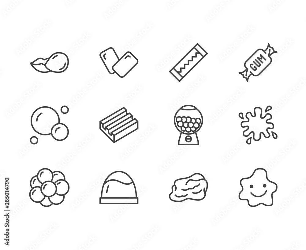 Poster adhésif Bubble gum flat line icons set