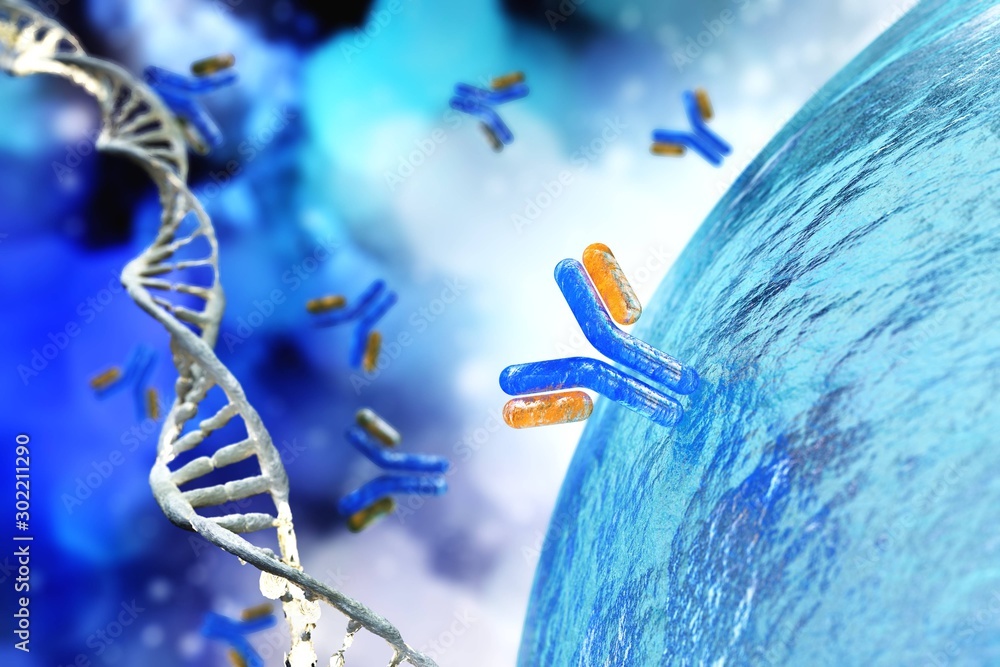 Poster adhésif antibodies, immunoglobulins, the immune system, 3D rendering