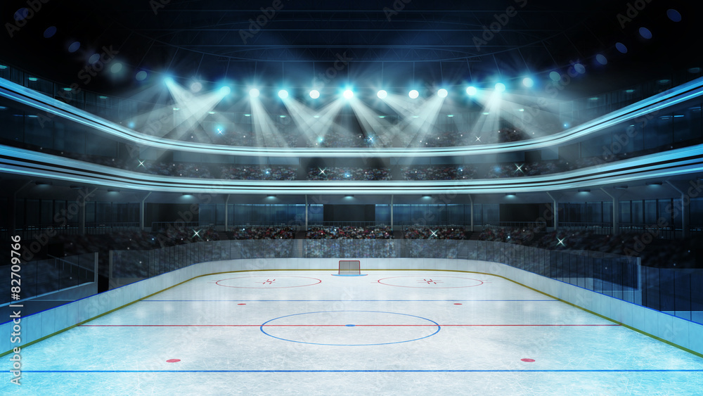 Poster adhésif hockey stadium with spectators and an empty ice rink