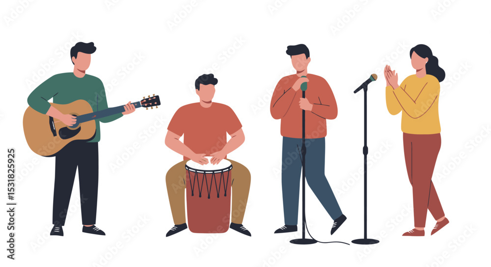 Photos Band Performance: Musicians Playing Instruments and Singing