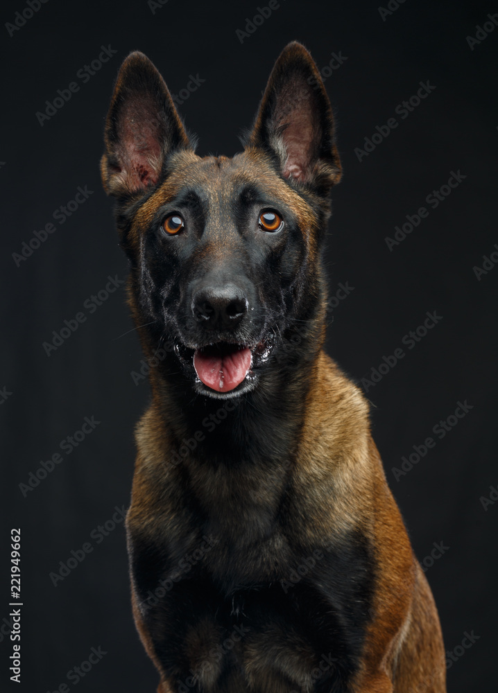 Tableau sur toile Belgian Shepherd Dog, malinois dog on Isolated Black Background in studio