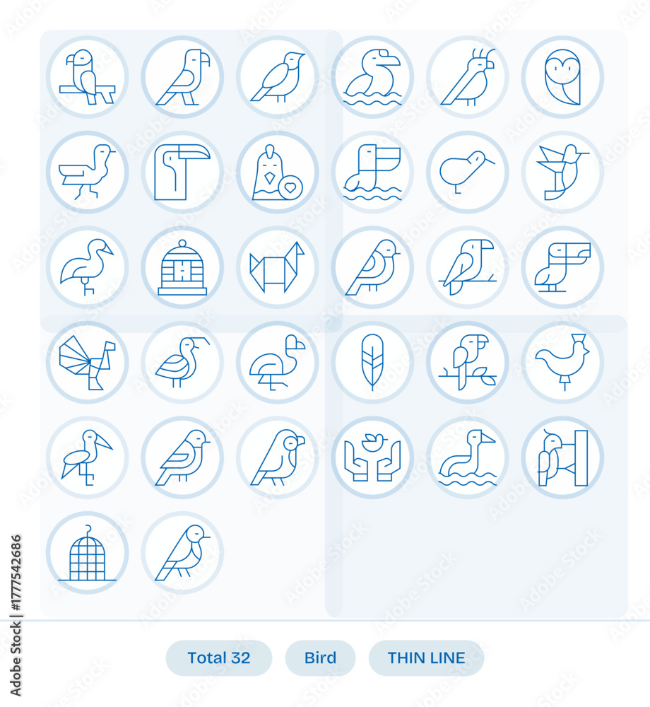 Photos Bird Vector Icon Toolkit featuring 32 Grid Fitted 64x64 Thin Line elements