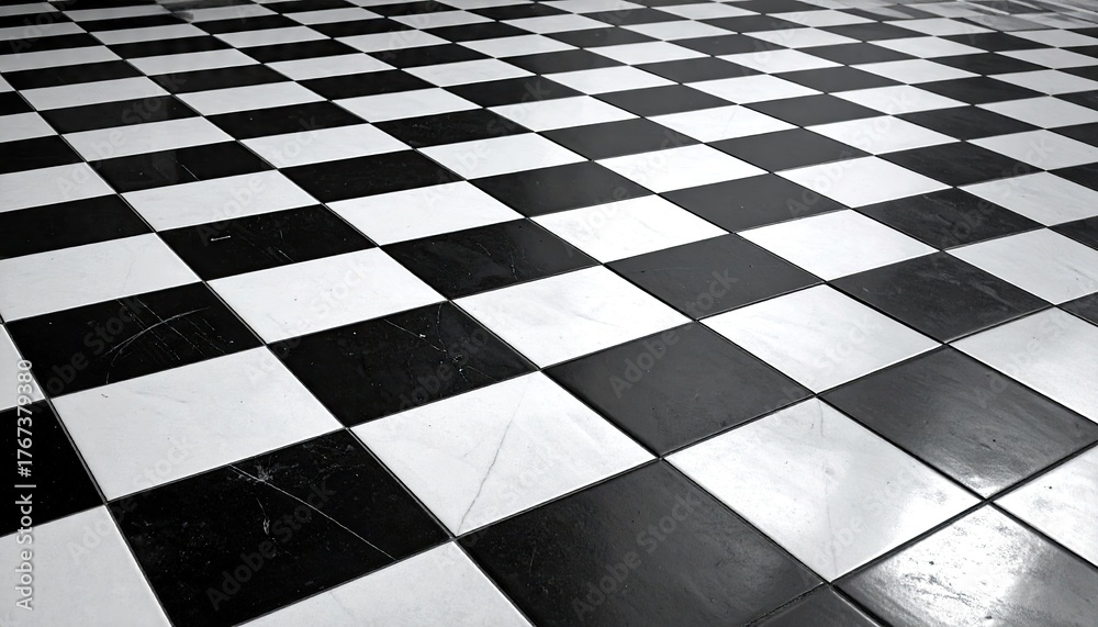 Photos Black and White Checkerboard Pattern Floor Tiles with Angled Perspective and Sub