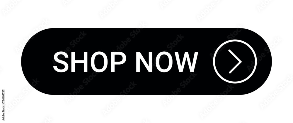 Tableau sur toile black shop now buy now button with an icon isolated on a white background
