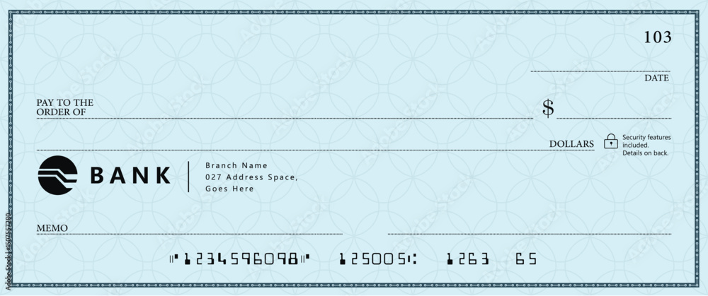 Photos Blue Bank check, vector blank money cheque, checkbook template with guilloche pattern and fields