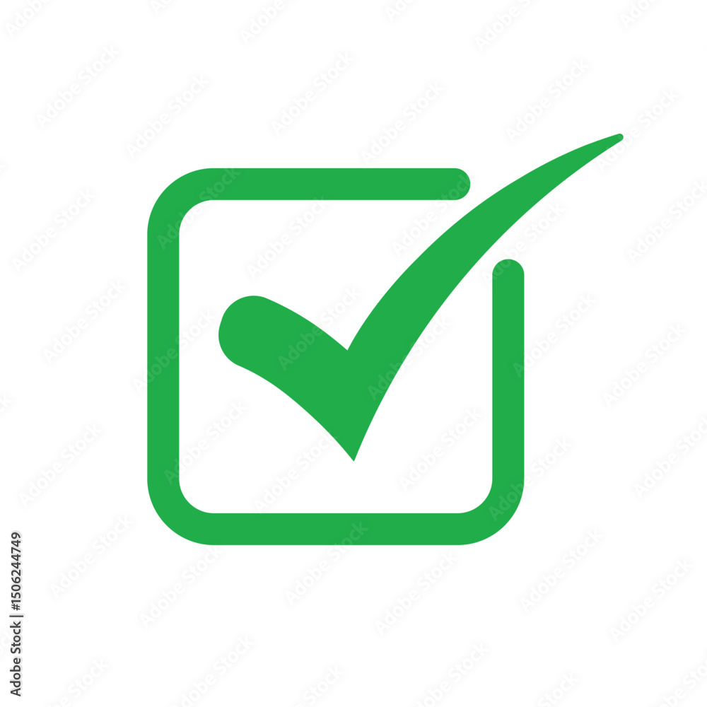 Tableau sur toile Bold green checkmark icon centered in a square on white