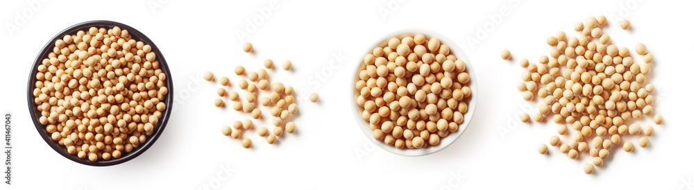 Tableau sur toile Bowl of soybeans isolated on white, from above