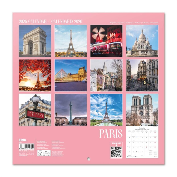 • Le calendrier Paris peut être accroché sur n'importe quel mur