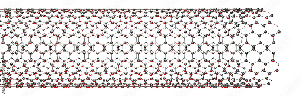 Tableau sur toile Carbon nanotube molecular structure, detailed 3D model of cylindrical graphene lattice